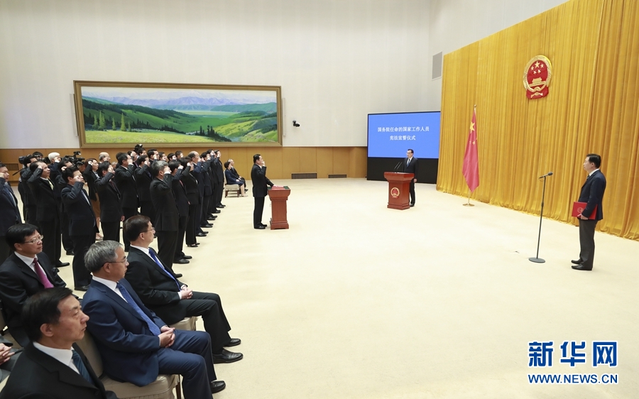 宣誓后,李克强要求大家深入学习贯彻习近平新时代中国特色社会主义思想,增强“四个意识”,坚定“四个自信”,做到“两个维护”,忠于宪法,依法履职,坚持人民对美好生活的向往就是我们的奋斗目标,践行使命,实干担当,清正廉洁,以更加饱满的精神状态、更加务实的工作作风勤勉尽责,促进经济社会持续健康发展,为建设富强民主文明和谐美丽的社会主义现代化强国努力奋斗。